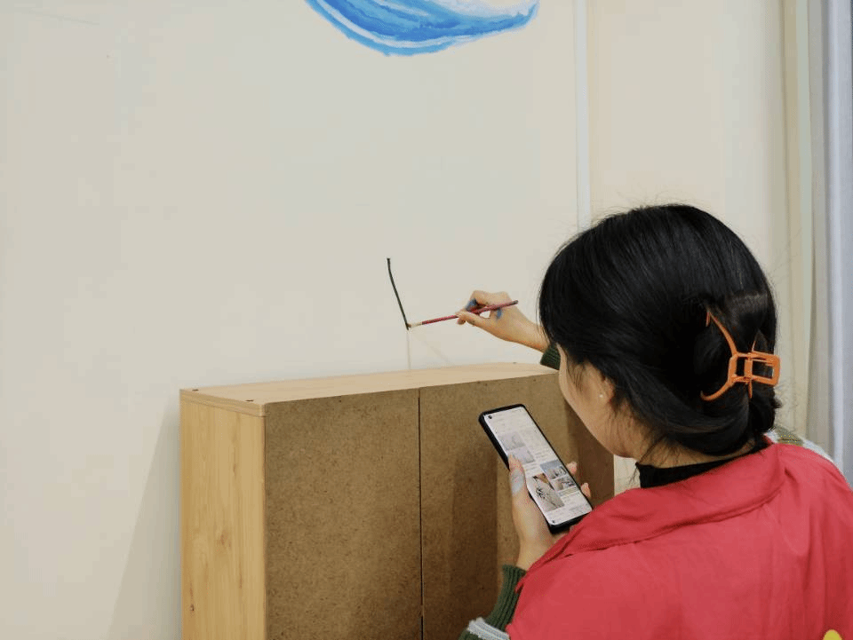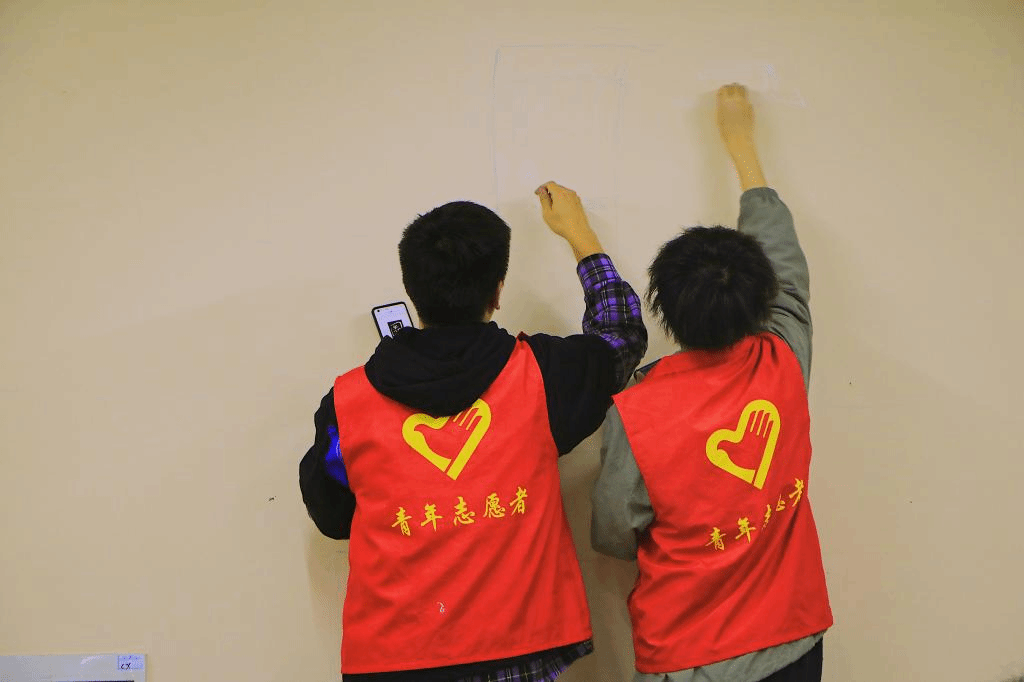 艺传志愿者们齐心协力,从清理墙面到起形勾勒、铺色、深入刻画,都展示着志愿者们的专业与细致。绘制过程中,志愿者们站在墙前一笔一画,互帮互助,从构图、打形,到调色、涂色,顺利有序进行着。最后,教室里里原本灰白的墙体上呈现出一幅幅美丽的画卷,宁静的教室里又增添了些许艺术气息。