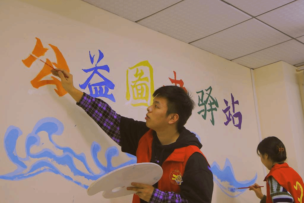 2021年12月11日,由艺术传媒学院青年志愿者协会组织,于重庆移通学院第五教学楼教师办公室的“公益图书驿站”主题墙绘活动圆满结束。此次活动经过了双方组织的充分准备,一切准备就绪后活动正式开始。