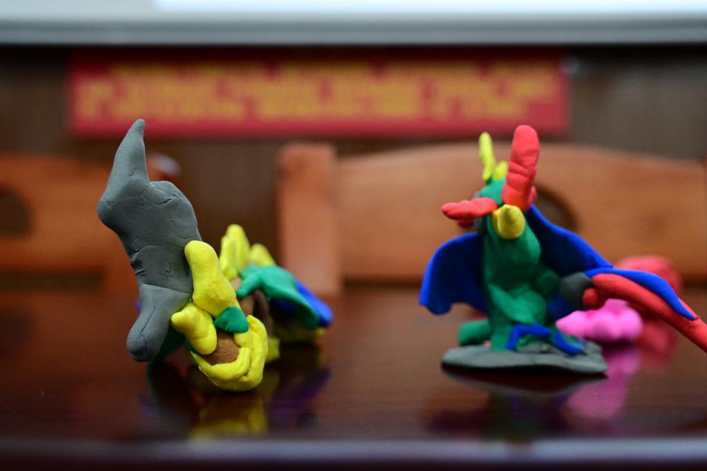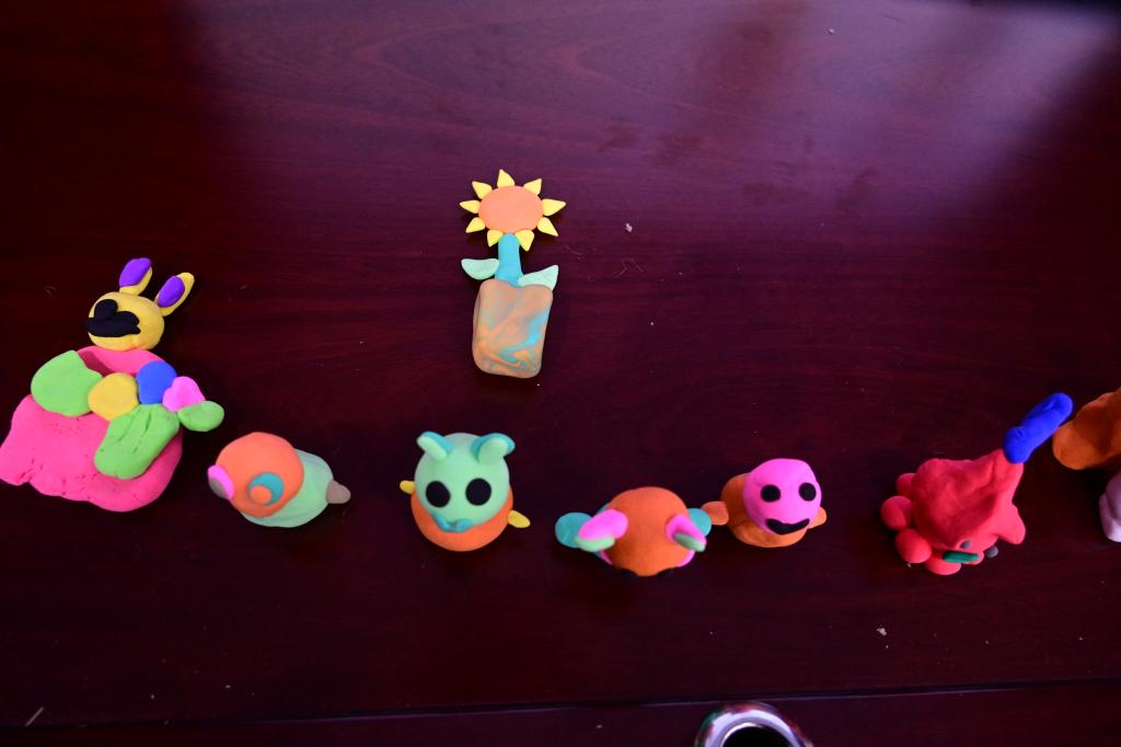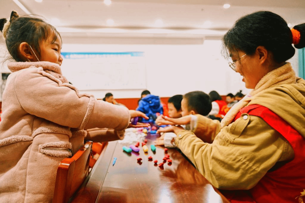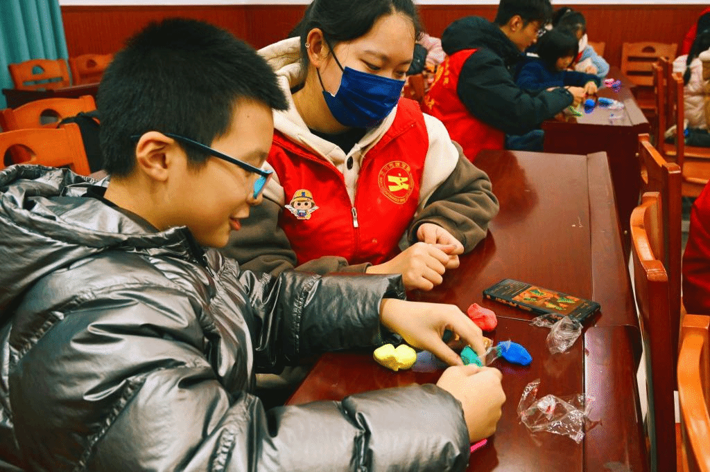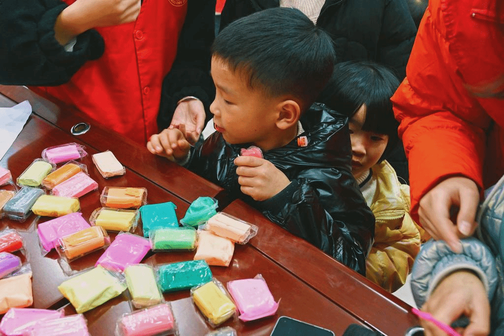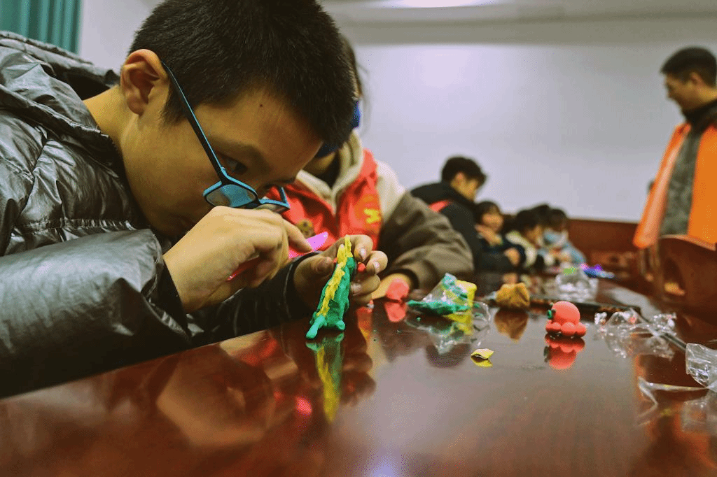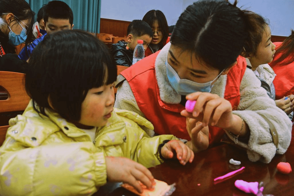 经过前半节课激烈的抢答过,课堂的气氛变得分外活跃,后半节课志愿者小老师拿出五颜六色的橡皮泥,准备教小朋友们捏橡皮泥。大家可以根据自己的想法,天马行空地去设计属于自己的小玩意儿。小朋友在志愿者们的指导下,搓泥、塑性、拼装,整个过程中每个人都有说有笑,这一温馨的场面都不忍打破。小朋友们最终也将橡皮泥捏成了自己喜欢的模样,这一过程中不仅提升了小朋友们的动手能力,更有利他们创新思维的塑造。