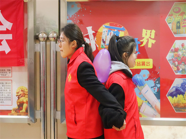 本次运动会有两校青年志愿者、太平门社区居住的小朋友和家长等近60余人参加。为确保运动会安全有序地进行,志愿者们首先为孩子们讲解了运动会项目和流程,赛事第一项便是“夹气球”游戏,志愿者们将小朋友分成两两一组,背靠背夹着气球,在不借助任何力量的条件下保持气球不掉落、不夹破安全运到终点便赢得比赛,小小的开场游戏,让现场氛围感拉满,小朋友们积极报名,在场的志愿者应接不暇。通过热身准备,志愿者和小朋友们开始跃跃欲试,现场热度开始上升。