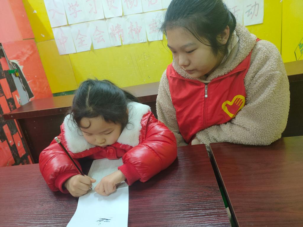 待他们写完作业,环保知识的学习继续进行。志愿者们高效有序地进行分工,每个志愿者为自己所负责的小朋友普及环保知识。通过“一志两小”知识竞答的模式,以此深化小朋友的环保意识,巩固小朋友们所学习到的环保新知识。