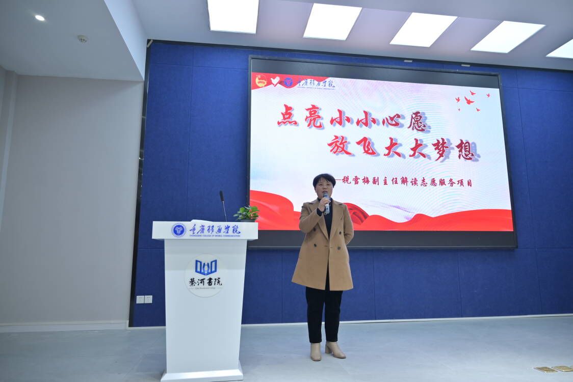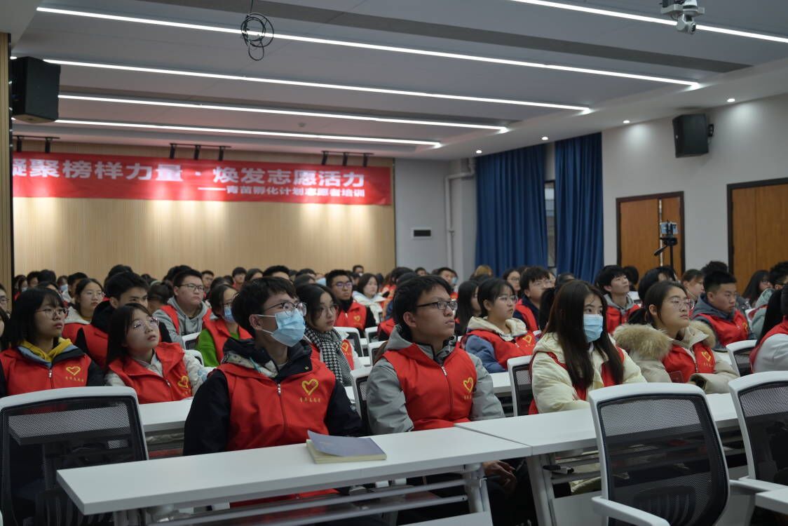 志愿者作为爱心的传递者和践行者,在日常生活中发挥着至关重要的作用。为切实提高我校志愿者综合素质,深化志愿者服务理念,树立文明有礼的志愿者形象,强化志愿服务专业技能,有效提升新时代文明实践志愿服务能力水平,推动志愿服务可持续发展。我校于12月14日在綦河书院二号楼QH2222观涛·多功能报告厅开展“凝聚榜样力量,焕发志愿活力”青苗孵化计划第一讲志愿专场培训,重庆市青年志愿者协会理事梅明老师、重庆市红十字基金会项目办税雪梅副主任、我校团委李兴凤老师、杨锦庆老师、彭昇老师、大数据与软件学院李进老师、淬炼·国际商学院肖琳老师及250余名志愿者骨干以线上线下的方式参与此次培训。
