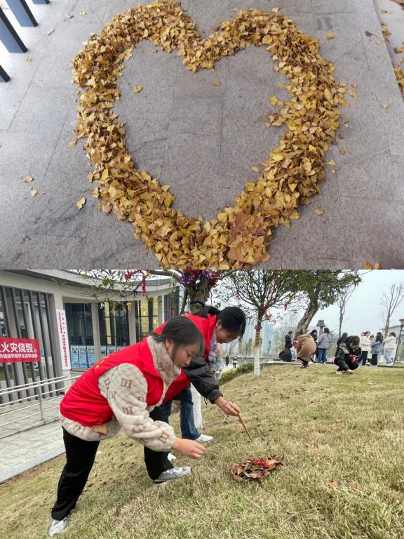 与此同时,另一边的志愿者也在收集可用的落叶。志愿者们仔细寻找着心仪的树叶,一边捡树叶一边讨论树叶的特征,大家都忙得不亦乐乎。不一会,志愿者们都满载而归,用捡回来的银杏叶制作出精美的手工艺品。在这个过程中,志愿者们不仅感受到了大自然的美好,也充分锻炼了自身的动手能力。