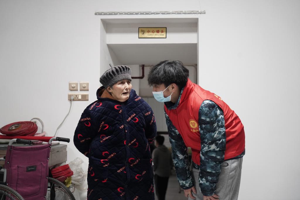 下午三点整,志愿者们乘车抵达九九老年公寓。抵达后,成员们按着早已分配的组别开始了今天的志愿活动。有的志愿者扶着老人在走廊外的椅子上晒太阳,感受冬日暖阳的温暖;有的志愿者陪老人说话聊天,聆听老人们的心声;有的志愿者为老人们打扫卫生,营造干净整洁的生活环境;有的志愿者为卧床老人捶背按摩,缓解身体上的疼痛。