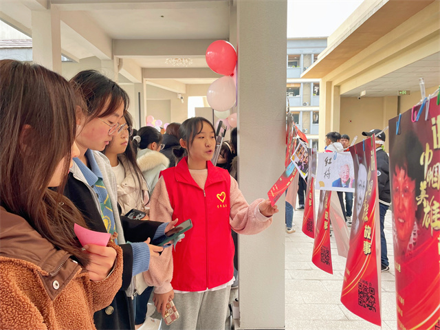巡展期间,四个展区以定点讲解方式全方位展出老兵故事、巾帼故事、支队故事和书画作品,荣军院嘉宾及各位老师现场巡展、提问、点评。值得一提的是,参展过程中,为了引导同学们更好地向巾帼英雄学习,志愿者们自发录制巾帼英雄的经典语录,制作成二维码明信片,方便扫描二维码收听,为参展者提供了一种耳目一新的巡展方式。重庆市荣军院社工科科长朱永红说:“看到同学们的志愿故事和志愿宣言,我感受到了志愿精神的传递和传承。这些孩子作为新时代志愿者,他们展现出了当代大学生良好的精神风貌。”每一个展区,都有定点志愿者为大家讲解作品所表达的情感和意义,引导参展者学习榜样力量,激发同学们“听党话、感党恩、跟党走”的爱党情怀。