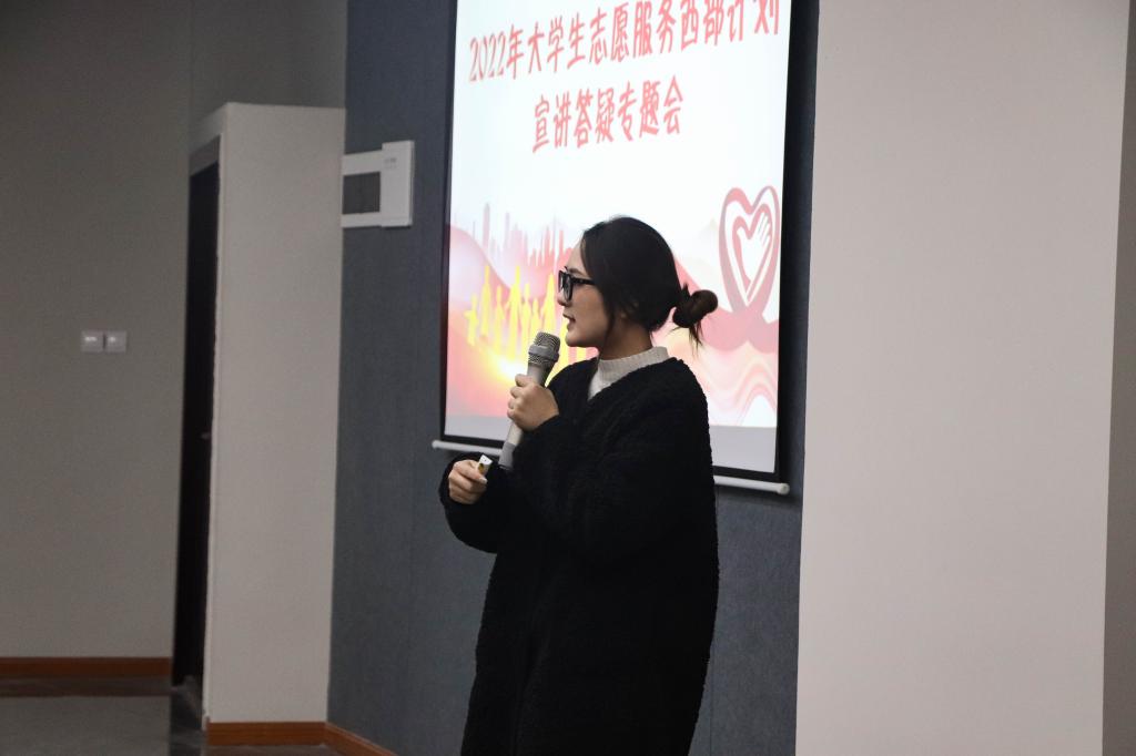 为积极响应高校毕业生基层培养计划的号召,引导我校应届毕业生积极加入到助力祖国中西部发展的行列中,我校校团委于12月20日中午12:00在南湖书院声影活动室以线上+线下的方式开展了西部计划宣讲会。本次活动由志愿服务板块指导老师汪小丁与我校应届毕业生等人参与,共计400余人参与。