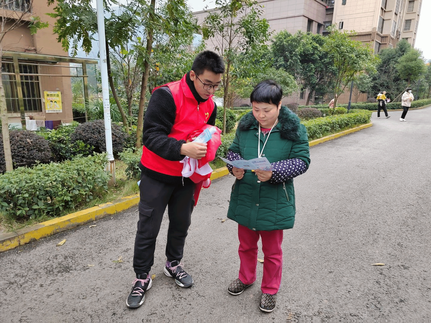 下午,志愿者们携带宣传传单、电子设备等,进入社区居民家中。为加大綦江区文明城区建设的宣传,志愿者们向社区居民科普创建文明城区的意义、基本条件以及对市民的要求三方面的知识,每到一处,志愿者们都会一边宣传,一边分发传单,以面对面的方式详细讲解文明城区建设内容,并做了相关调查问卷。