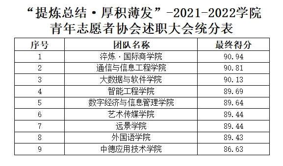 “提炼总结,厚积薄发”—2021-2022学院青年志愿者协会学期述职大会圆满落幕。本次分论坛不仅为移通青年志愿者们提供了交流学习的机会,也让移通学子对我校志愿服务发展充满信心。未来青年志愿者联合会与各学院青年志愿者协会将继续携手引领我校志愿服务续写志愿新篇章,创造新辉煌。