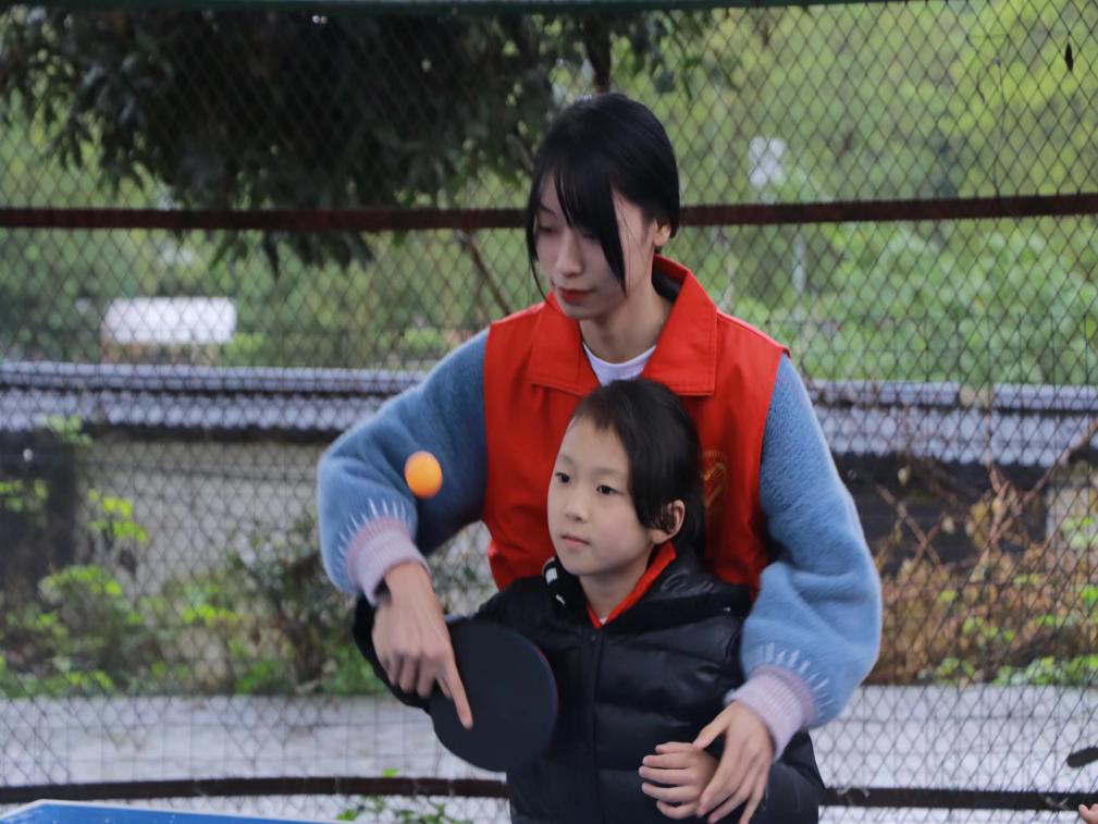教室内,志愿者们满足小朋友的需求,开展兴趣活动,志愿者会告诉小朋友下棋方法与下棋规则,小朋友学习后会回家教自己的父母。可谓是形成了很好的“反哺”。操场上,小朋友与志愿者老师一起运动,活动筋骨,每一刻都在释放身心,志愿者们也仿佛回到了小时候,感受到了童年的快乐时光。