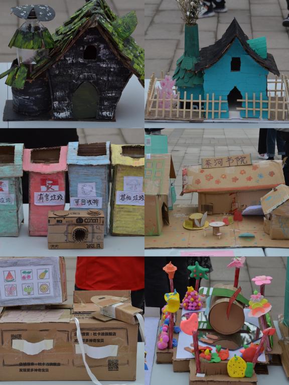 12月9日—12月20日举办“变废为宝”——手工艺品创作大赛,邀请全校师生参与其中。本次比赛以“垃圾”为原材料制作,分为个人赛与4-6人团队赛,在为期6天的活动中,共收集个人作品203件,团体作品121件,参与人次达808人次,通过大众评选和老师评选,最终评选出团体、个人一、二、三等奖。