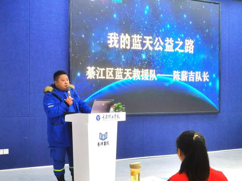12月20日,在由校团委主办、大数据与软件学院青年志愿者协会承办的青苗孵化计划志愿培训(第二讲)上,“希望能够通过我的行动,激发身边人的善念……”陈薪吉队长在培训中,向我们分享了綦江区蓝天救援队的志愿故事,温暖着在场所有志愿者的内心,让志愿者们对志愿者精神、志愿服务意义有了更深层次的理解,将“奉献、友爱、互助、进步”的志愿服务精神深刻内心。携手志愿,共赴明天。活动最后,大数据与软件学院团总支与綦江区蓝天救援队共同签署了合作共建志愿服务阵地签约协议,为更进一步提升移通志愿者的理论素养和实践能力做准备。
