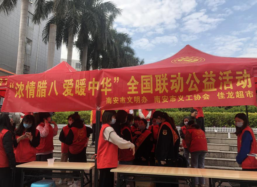 在腊月初八这天,我跟随南安市义工协会联合南安市文明办、佳龙超市在李厝花园举行了“浓情腊八,爱暖中华”全国联动公益活动,免费为环卫工人、过路行人等发放腊八粥,共庆腊八节。将腊八的喜庆带给为我们辛苦工作的环卫工人们,感谢他们的付出。