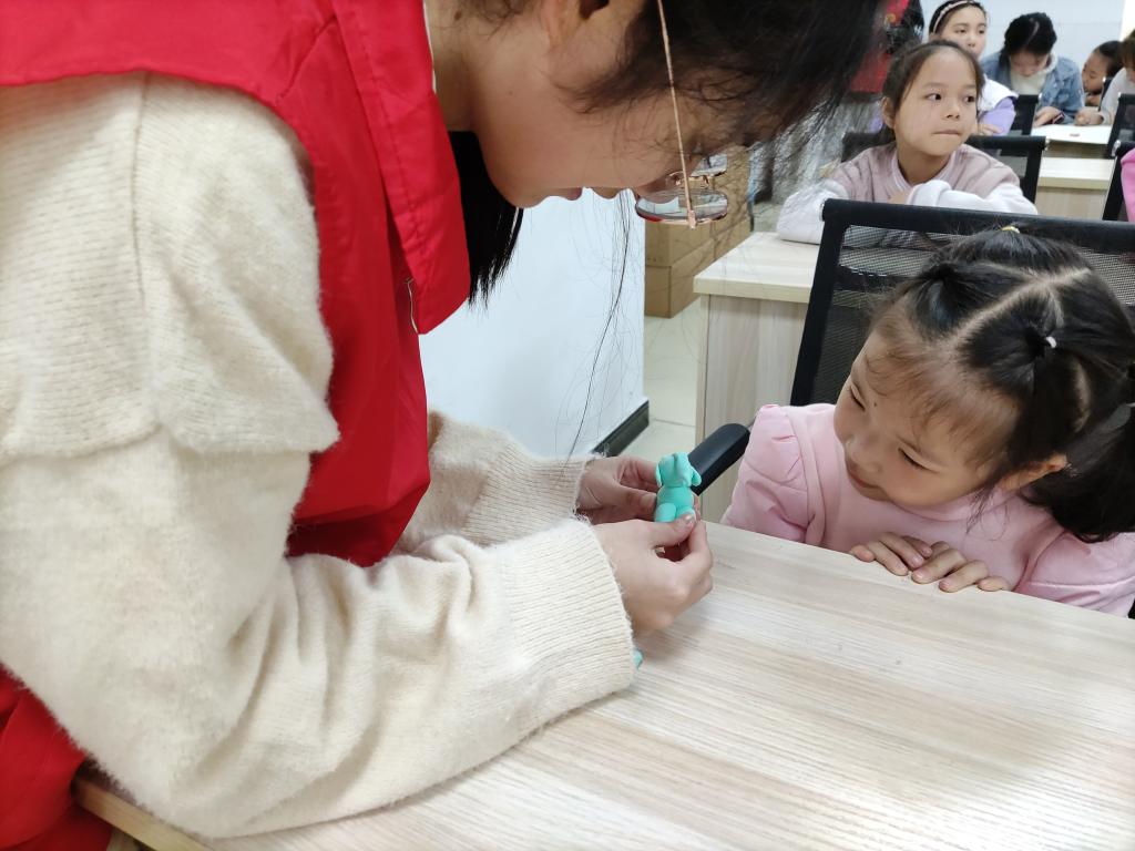 因活动是在寒假举行,活动形式与以往也略显不同。由于孩子们在外打工的父母过年回家团聚的原因,部分孩子们的父母也到达活动现场,这使孩子们表现得更加兴奋、活跃,在活动中积极展现自己。青年志愿者们和小朋友们一起捏橡皮泥,在这个过程中,移通红纷纷表示:“小孩子的想象力比我们要厉害很多,不是我们在教小朋友,而是小朋友在向我们展示自己。”每个小朋友的脸上都洋溢着幸福,青年志愿者们更是拿出了自己百分之百的耐心,和小朋友们一起玩耍。