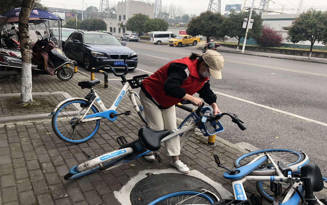 此活动通过志愿者们学校周围路上的共享单车停放点,将共享单车扶正,停放到指定区域,摆放整齐。同时,对正在使用或停车的单车使用者进行引导,以此优化周围道路环境。通过这次志愿活动增加志愿者们“奉献、友爱、互助、进步”的志愿服务精神,将助人为乐的雷锋精神继承发扬。