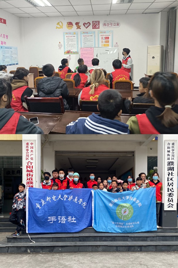 下午的趣味课堂,我们迎来了学校的手语社团,为孩子们带来精彩的手语教学,教导孩子们用手势变化来表达自己的一些想法,方便孩子们以后与有听力障碍和无法语言的人进行一些简单的交流。小老师耐心地教导孩子们,一句一句反复地教学,虽然进度缓慢,但是能让孩子们记得更加深刻。志愿者们也和小朋友一起学习手语歌,小朋友们更是积极举手,个个都想上台表现自己的学习成果。课堂的最后,老师和孩子们一起把今天的教学内容重新复习了一遍,几乎每个孩子都学会了这个简单的手语歌。相信今天的课堂必然能使孩子们受益终生。