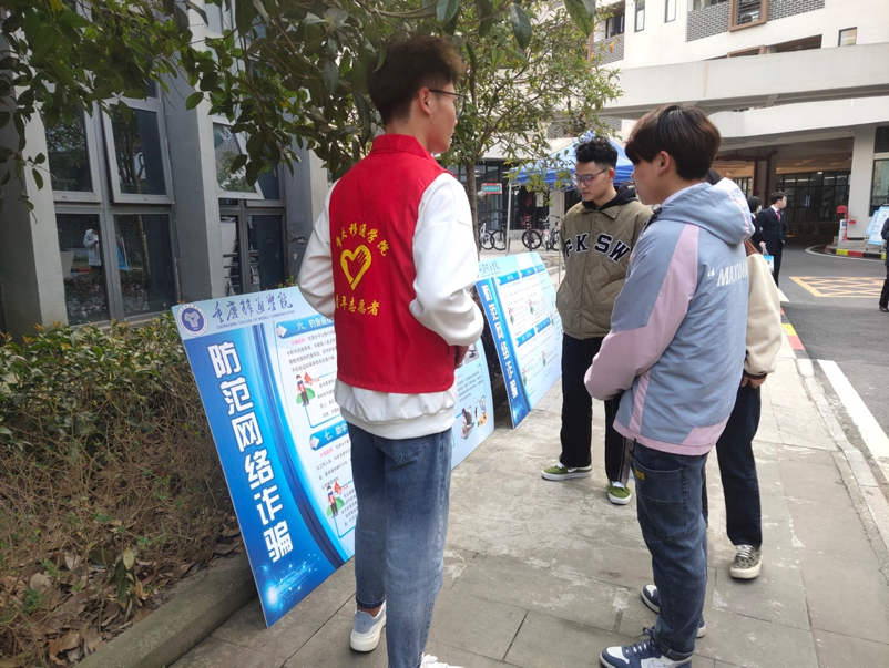 以志愿筑平安校园,面对多样的网络诈骗,智能工程学院青年志愿者协会的志愿者们通过在校园张贴反诈防骗横幅,发放反诈防骗宣传单。讲解防范网络诈骗知识,揭露网络诈骗犯罪的作案手法,让同学们及时了解新发、高发网络诈骗手法,学习掌握识骗防骗技巧,进一步提高同学们的安全防范意识,有效防止网络诈骗案件在校内的发生。