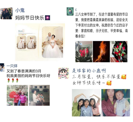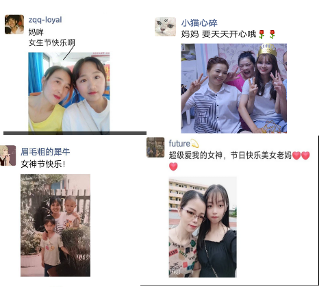 本次“三月伊人节.爱在记忆中”妇女节线上活动圆满完成,在此次活动中,同学们积极参与活动,同妇女们共庆这个特别的节日。通过写感谢话语,发布合照这样有趣深刻的方式,借此表达对各位长辈的爱意,敬意,更让同学们深刻的明白妇女节的意义。