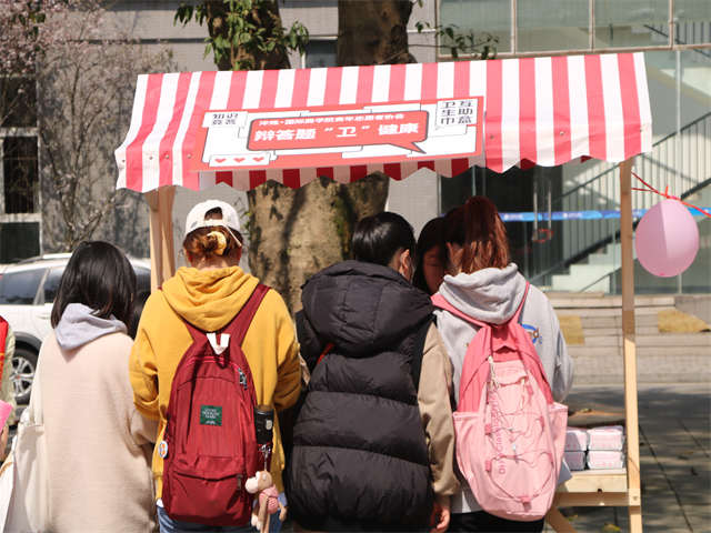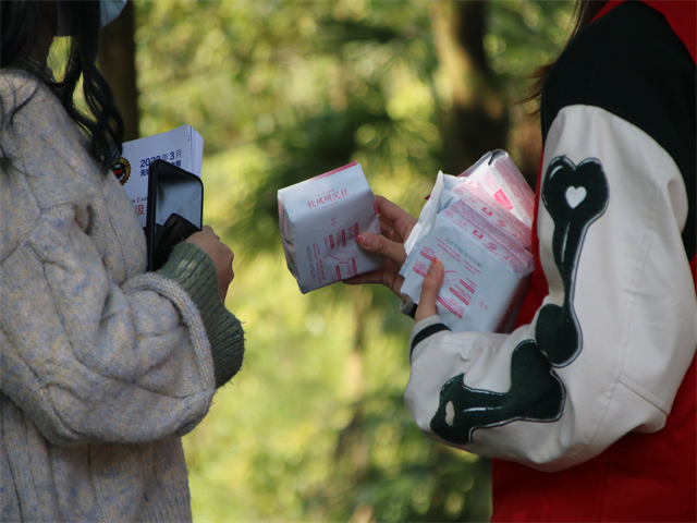 卫生巾互助盒在本次活动中也“名声大噪”,志愿者向每一位领取卫生巾的女生宣传了“取一还一”的互助理念和拒绝月经羞耻的意识,希望可以通过这种方式帮助更多的女性解决在生理期遇到的窘迫,让正在奔赴关爱女性的点点星光燃出更加绚烂的光。