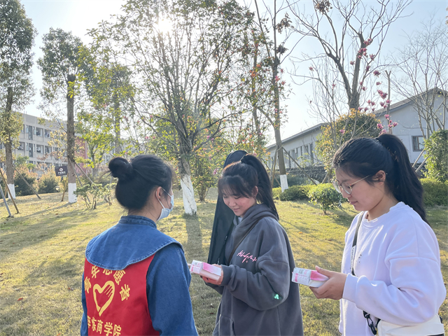 走过了花果书院、别都书院、北山书院、鱼城书院、南湖书院、爱莲书院和汇江书院,将每一包卫生巾都送到我校女生的手里