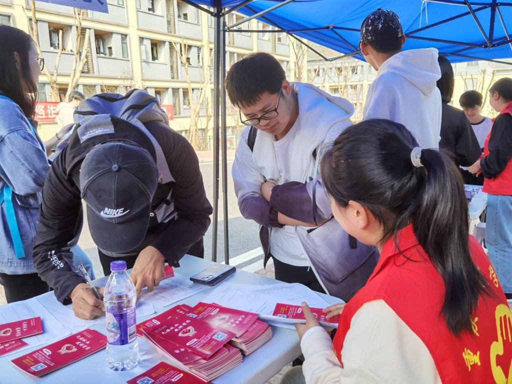 一滴热血,一份关爱,每一滴热血都将汇聚成磅礴力量,让世界继续跳动。3月9日14:00—17:00,为提高后期献血效率及血液质量,志愿者们在三号实训楼下为路过师生发放知识宣传小手册,举行“知识来敲门”无偿献血知识竞答小活动,对献血前后注意事项以及基本要求进行简单科普。并且为更好的向全校师生宣传无偿献血相关知识,活跃现场气氛,增强同学参与感,激发互动积极性,本次竞答为“答题小能手”们准备了公文包、发卡等精美礼品。阳光漫步在走道,穿梭于红马甲,更多的师生在欢乐中了解献血小常识,为后期献血活动打下坚实基础。