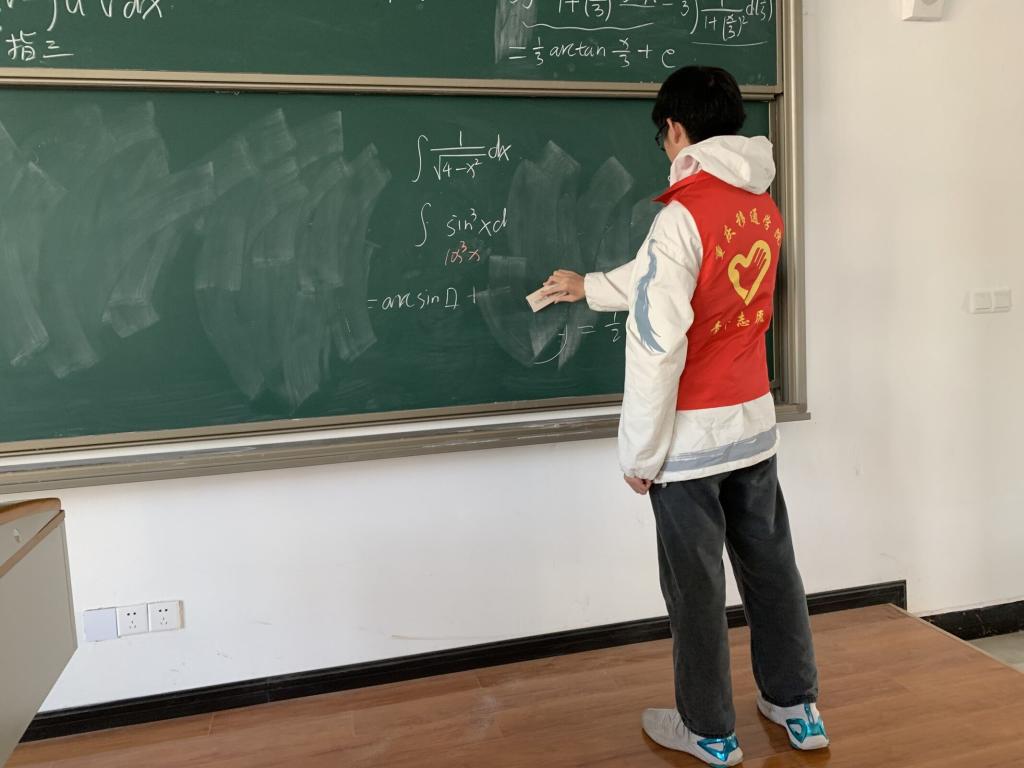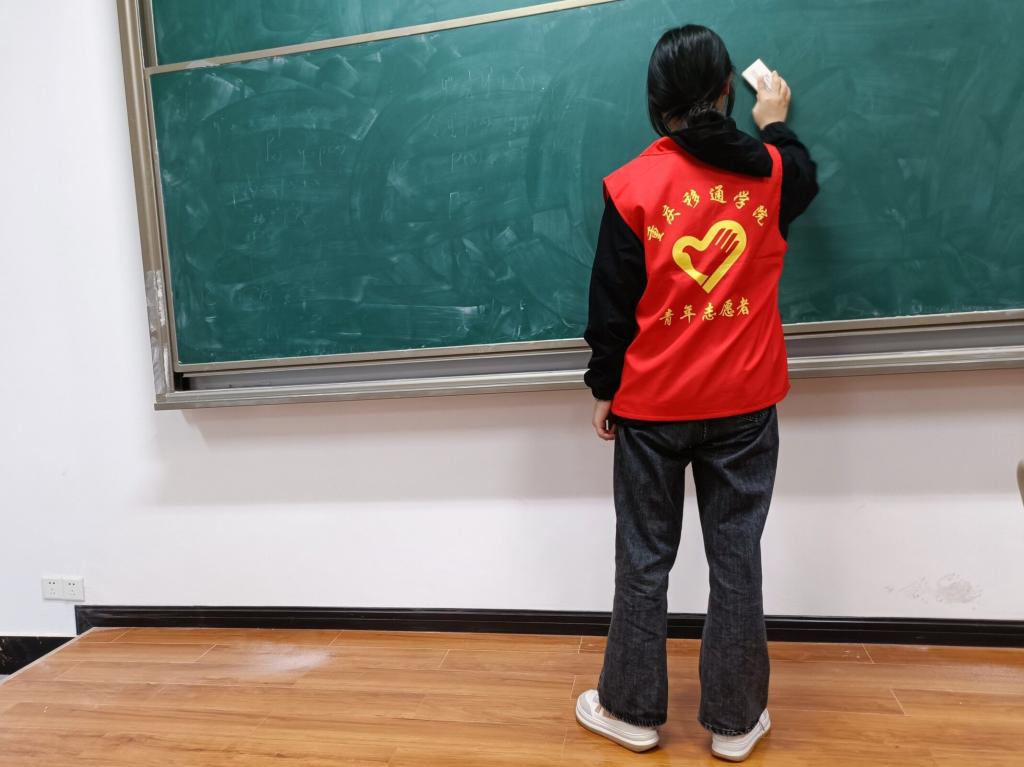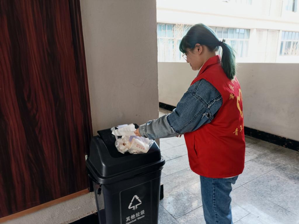 本次的服务地点是勇者楼2楼与3楼,身着红马甲的志愿者们相继集合完毕,为提高志愿活动效率,志愿者们明确分工后,相继到每一间教室展开垃圾清理、擦黑板、关灯等工作,志愿者们认真、细心地打扫每一间教室,垃圾箱里面的垃圾越来越多,教室也愈加干净整洁。志愿者们挥洒汗水,让环保的种子在心中发芽开花,让绿色环保意识永驻校园。