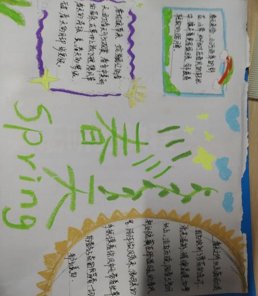 活动中期,同学们积极的投入在作品的制作中。有的同学走入了校园之中,用画笔记录了校园的春天,记录下了校园中的春的痕迹,春的生机,将眼中美好的瞬间,永恒的留在画纸上;有的同学用各种鲜艳色彩的卡纸,折成了一朵朵独属于春天的鲜花,这些鲜花不仅点缀了同学们的生活,还点缀了整个春天;新奇的手抄报,精美的剪纸,还有各种精致的手工制品,优秀的创意层出不穷。