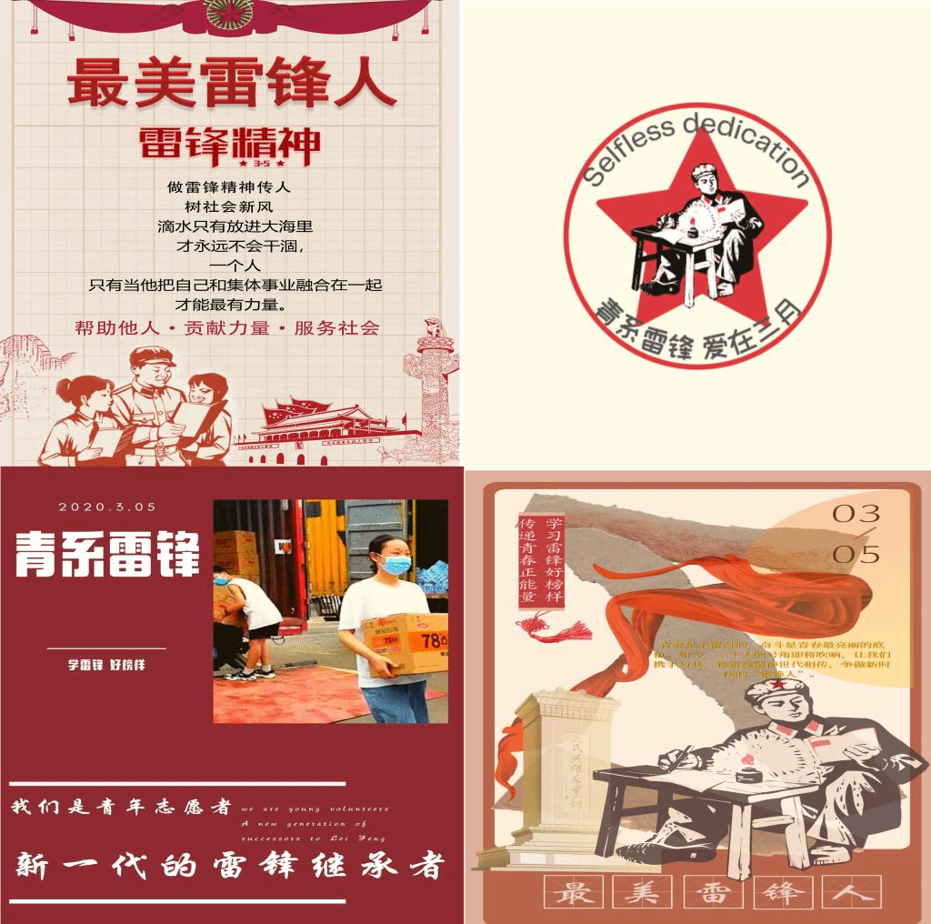 一张张精美的海报,一份份生动的视频,都体现了同学们各自对于雷锋精神的独到理解。“众志成城,疫后开花,致敬身边的最美雷锋人”海报上简短的一句体现的是雷锋精神贯穿于最美逆行者那奋不顾身的全过程。短短的一分钟视频表达了同学们对雷锋精神的赞美及歌颂,对疫情中最美逆行者的感激。同学们奇思妙想的创作,是头脑风暴高速运转,是艺术与精神文明的结合。