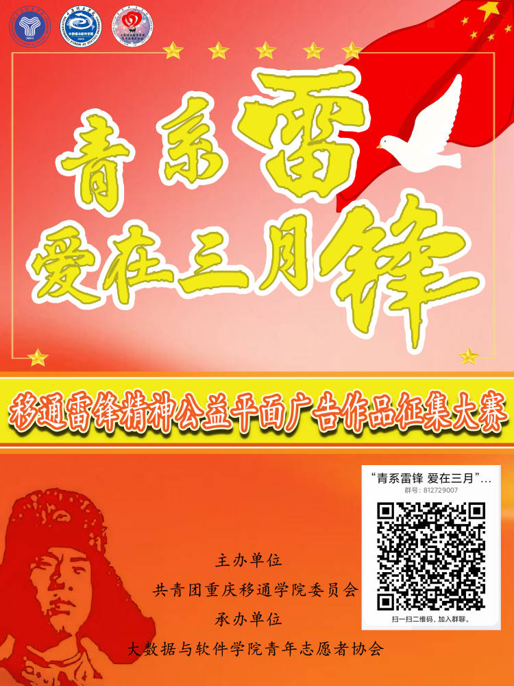 三月,一个温暖的月份;雷锋,一位人民的榜样。为弘扬志愿服务精神,引导同学们继承优良传统,促进同学们充分理解雷锋精神的历史意义和时代内涵。大数据与计算机科学学院青年志愿者协会于2022年3月17日-2022年3月26日以线上形式开展“青系雷锋,爱在三月”移通雷锋精神公益平面广告作品征集大赛。当别具匠心的艺术形式与崇高的雷锋精神相碰撞结合,注定会摩擦出绚烂的烟火。
