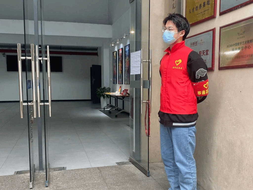 不管是在课间,还是课下,都能看见身着红色志愿马甲的志愿者,站在教学楼门口,提醒着过往的同学戴好口罩。一抹抹红色在校园里格外显眼,他们不仅是艺传学子,移通学子,更是以身作则的大学生志愿者。