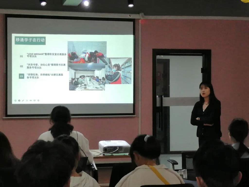 印鸿羽主席在分享会上浅略介绍了外国语学院青年志愿者协会的组织结构和建设思想。外国语学院青年志愿者协会是由志愿从事社会公益事业与社会保障事业的青年共同组成的团体,是一个温暖有爱的大家庭。其下设三个部门、九个支队,经过长时间的不懈努力,成果斐然。
