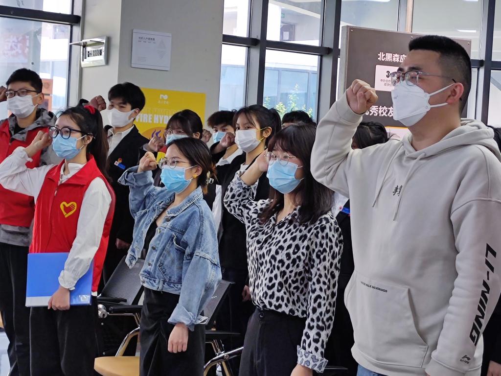 “尽己所能,不计报酬,帮助他人,服务社会”右拳握紧,声声誓词包含着支队长们对志愿服务工作的坚定决心,也激励着支队成员秉持志愿初心,严格要求自身,不负志愿使命。