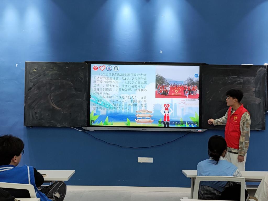 为推动我校志愿服务建设,提高我院志愿服务工作效率,2022年4月12日下午,綦江校区通信与信息工程学院、信息安全学院青年志愿者协会于智慧教室开展第五期“花果培训”活动,为各班班委进行志愿服务培训,弘扬“奉献、友爱、互助、进步”的志愿服务理念。