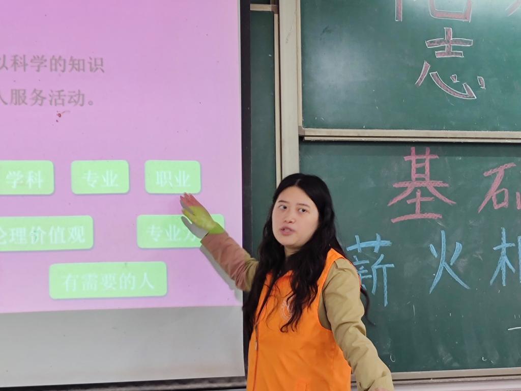 本次培训会邀请到合川区嘉涪同心社会工作服务中心陈贵吉老师、袁小红老师、孟丽老师为嘉宾,周荷娜老师作为主讲人,向通信与信息工程学院青年志愿者协会各志愿服务专项支队成员进行志愿服务知识培训,由通信与信息工程学院青年志愿者协会宣传部部长吴依琳担任主持人。