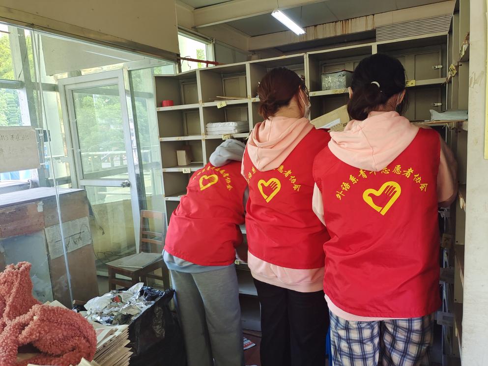 相互沟通是通往心灵的桥梁,是工作顺利进展的保障。活动开始,志愿者们早已了解活动要求,投入工作。学校刚刚解封,但志愿者们参与志愿活动的斗志不减,分类整理好各种书籍报刊,互相帮助,团结合作,接着他们开启了下一项工作。志愿者们打扫收发室的卫生,整理信件并对其分类,之后再派送信件报刊。