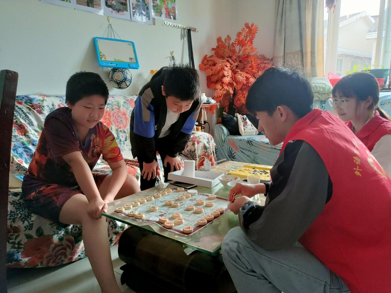 拥有一个好朋友大概可以算得上是世上最幸福的事吧。当志愿者正和小熙讨论题,突然楼下传来一声吼叫,叫着小熙的名字,小熙一听,立马跑到窗边,叫好朋友上来,这也是志愿者第一次见到他的朋友。随后他们便一起和志愿者下象棋,他们很认真,两个人的头脑就是强大,最终赢得胜利。有时他们会相互争吵,有时也会动手打闹,但丝毫不影响彼此之间的友情,这大概就是小孩子之间最真挚的友谊。他们的相处模式让外人看了也很舒服。