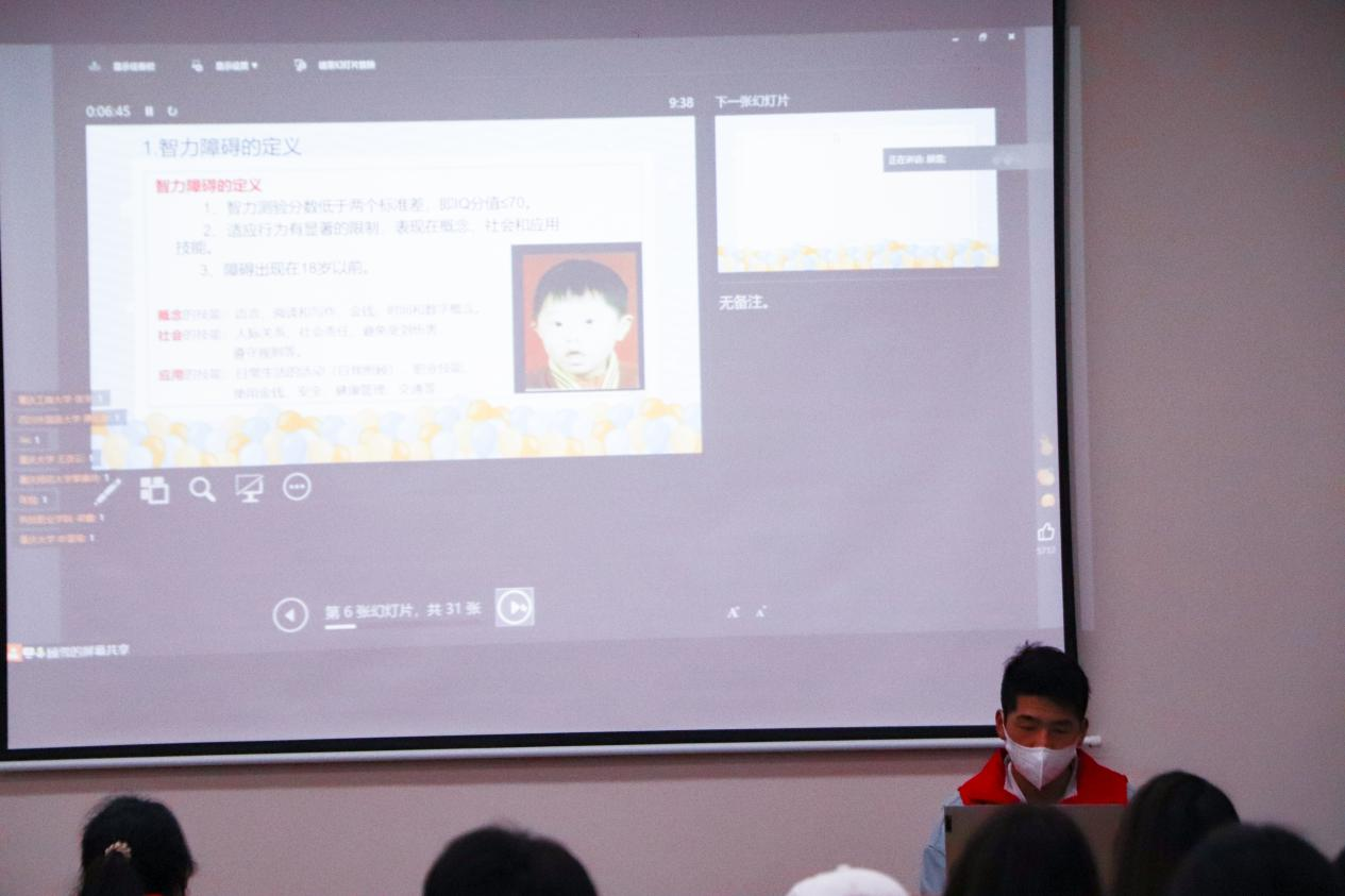 在日常生活中青年志愿者们很少接触残障人士,对残障人士的定义和残疾类型并不了解。为此重庆市残联的李霞主任向大家阐明了残障人士的定义以及我国残障人士的分类,解读了重庆市和中国的残障人士现状及其相关政策。李主任还介绍了中国残联的职能和特点,以及三种类型的助残惠残政策。包括综合性助残惠残政策、分残疾类别惠残政策和其他部门涉及的惠残政策。通过李霞主任的详细讲解,“馨小青”助残青年志愿者们对重庆市的残障人士人数和残疾类型有了全方面的认识,有助于助残志愿服务的开展和服务质量的提高。