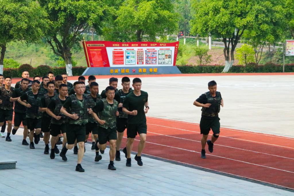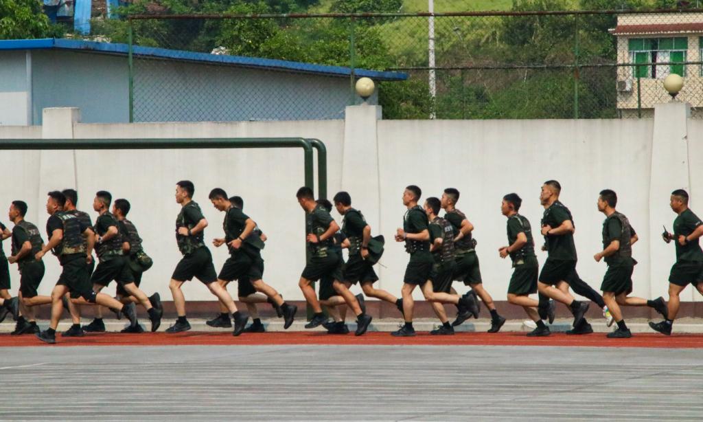 武警中队的室外操场上,是正在进行体能训练的武警战士们,他们衣服湿透,汗流全身,但战斗意志依旧爆棚,他们用铿锵有力的口号声回应人民的期盼。骄阳下的身影,烈日下的赤诚之心值得每个人铭记。