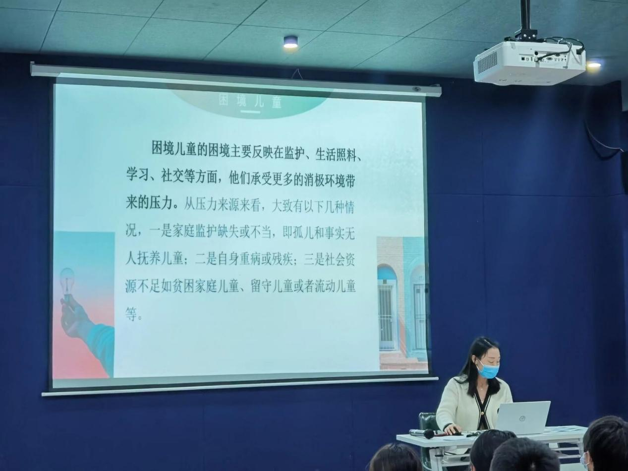 儿童是国家的未来和民族的希望。长期以来,社会上的困境儿童备受关注,为帮助志愿者收获更多的心理疏导小技巧,帮助困境儿童克服心理障碍,树立正确的价值观、成才观、提高他们的自信心、鼓励他们健康成长。4月1日16点,校团委特邀学生处心理健康教育与咨询中心林红老师于银河·影音室开展青苗孵化志愿服务培训之《困境儿童心理疏导技巧》专题培训会。志愿者们通过总结老师经验、展开激烈讨论、积极分析案例、同时现场开展模拟实践,使学习的心理技巧得到进一步加深,为以后相关工作奠定了坚实基础。