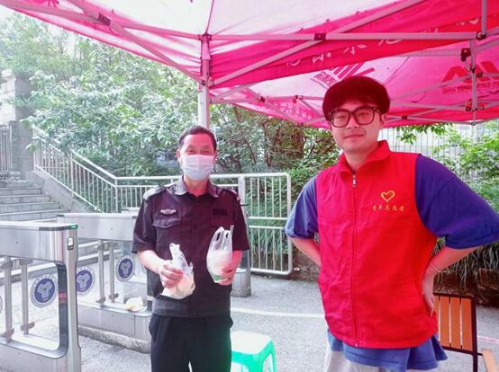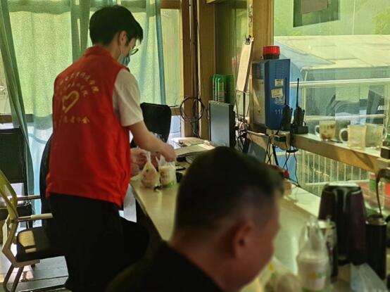 天色初亮,一个个身着红马甲的志愿者们在早餐店铺排起了长队。他们手中提着热气腾腾的早餐,奔波在校园的各个角落绘就了一道靓丽的风景线,只为将手中的爱心早餐送到每一位值班人员手中。一顿简单的早餐,一颗简单的心,承载着志愿者们对劳动者们的爱,包含着一分人情、两分欢喜、三分热情,他们用最普通的方式告诉值班人员——“我们与你们同在”。