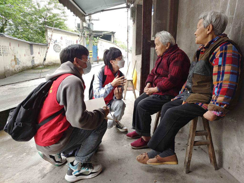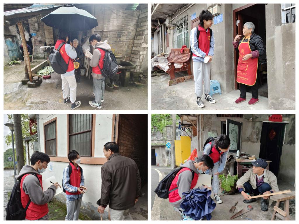 团队选择合川区盐井社区进行实地深入探访,志愿者们在盐井社区附近的小村庄中穿梭,徒步行走近两万步,共访问二十三位老人,并熟悉当地行动不便的老人的分布情况。志愿者们深入了解当地老人的生活状况,询问老人对理发的需求和发型要求,以及老人们对“益剪唤心”志愿服务的期望,志愿者用笔将老人的建议和需求一笔一画记录在笔记本上,更是记在志愿者们的心中。
