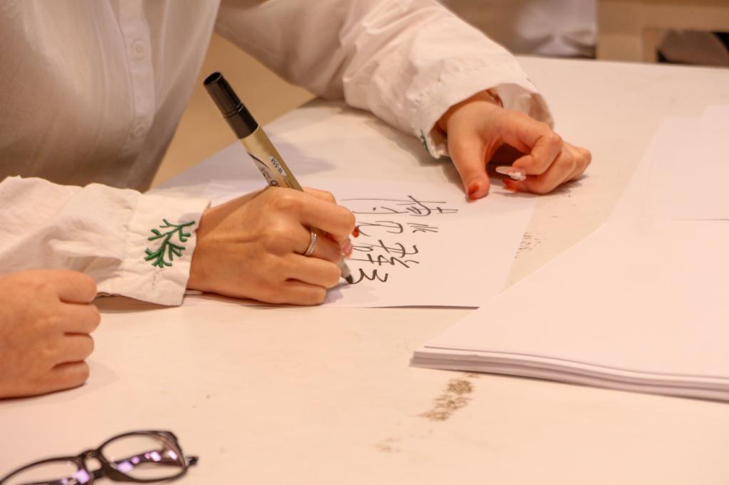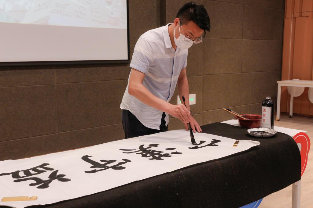 最后,林泽东老师为此次活动现场题字,在宣纸上写下“益守汉字”,一笔一捺,铿锵有力,表达对通信与信息工程学院青年志愿者协会“益守汉字”活动的肯定与希冀。