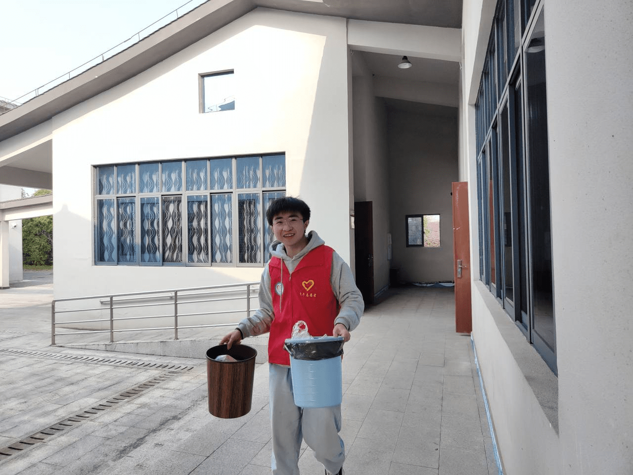 志愿者们先集合准备分配任务,当穿上红马甲的那一刻志愿者已经担负起了责任。志愿者们对山上的四个书院进行了彻彻底底的打扫。志愿者们的劳动极大的增强了学校的同学们对校园卫生的保持力度。