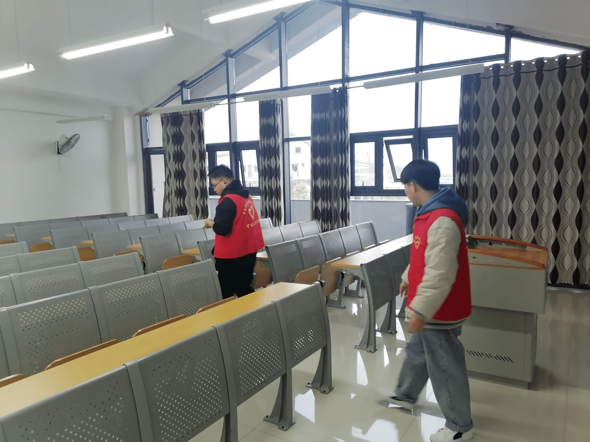 负责人分好任务之后,志愿者们分别前往自己负责的区域上开始打扫卫生,志愿者们轻车熟路,干得热火朝天。为了使校园卫生环境更加的美好,志愿者们将一张张桌子,一间间教室,将整个学院的教学区域逐个打扫干净。