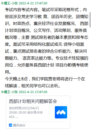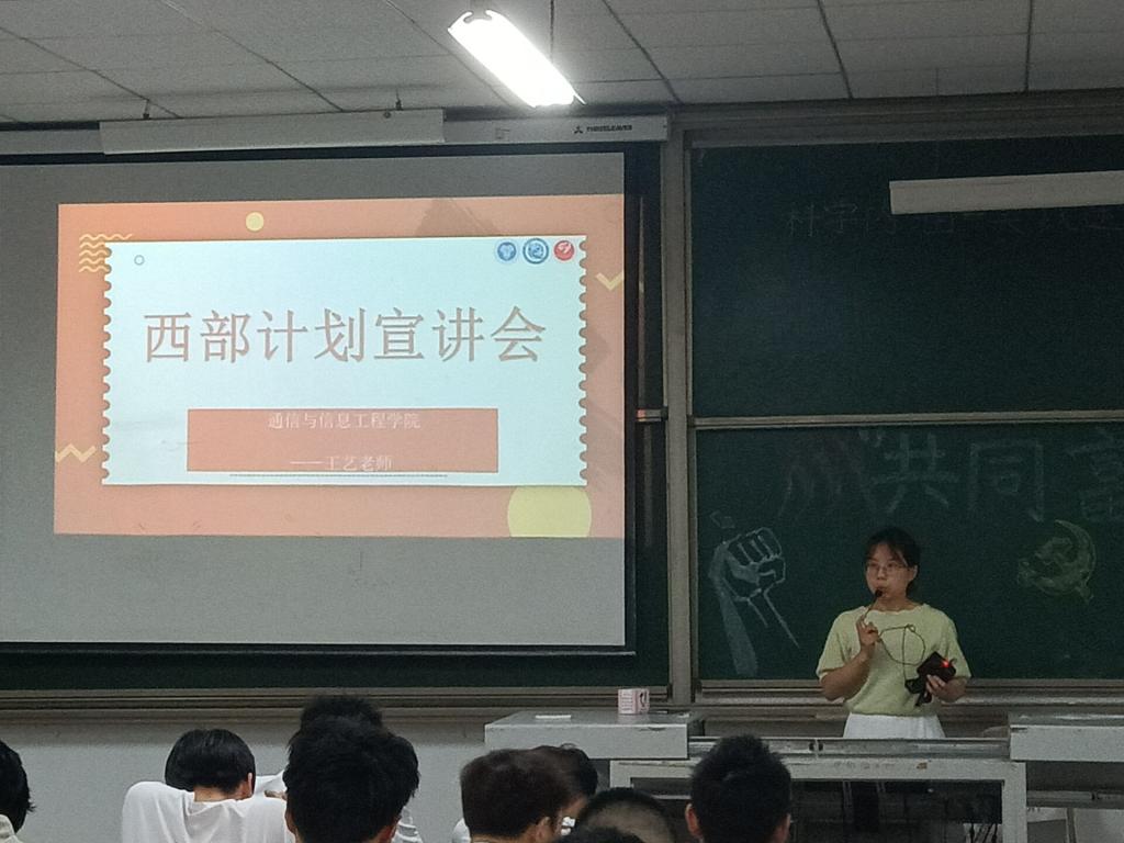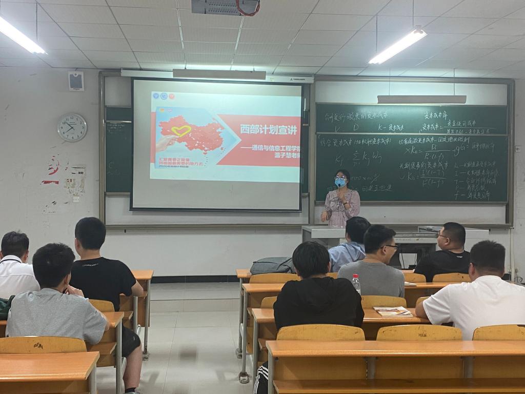 为积极响应共青团促进大学生就业行动,使学生更全面地了解西部计划,树立正确志愿服务思想,做好2022年大学生志愿服务西部计划招募工作,通信与信息工程学院4月至5月在第四教学楼及腾讯会议开展6场西部计划招募宣讲会活动。