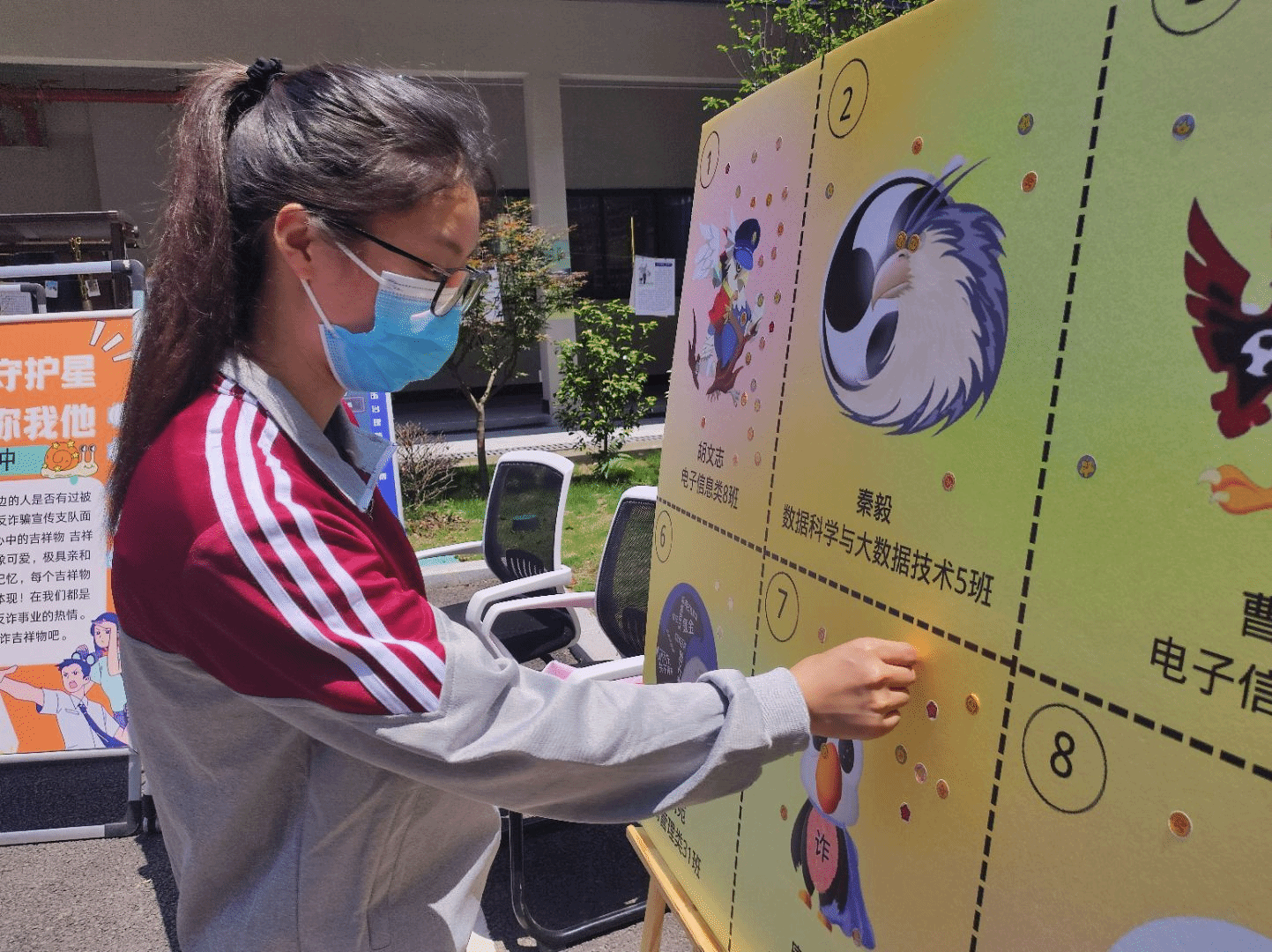揭牌仪式结束后,綦江区公安局为移通学子准备了2022年科技周进校园活动,“飞鹰”反诈宣传志愿服务专项支队也设置了DIY“芭蕉扇”,扇走诈骗犯、反诈小剧场、诈骗体验场,你我不返场、反诈吉祥物四个反诈小游戏,让同学们对网络诈骗提高警惕,增强防范意识。同学们在志愿者的引导介绍下,身临其境进行诈骗真实案例体验,引起同学们对如何高效反诈的深入思考。