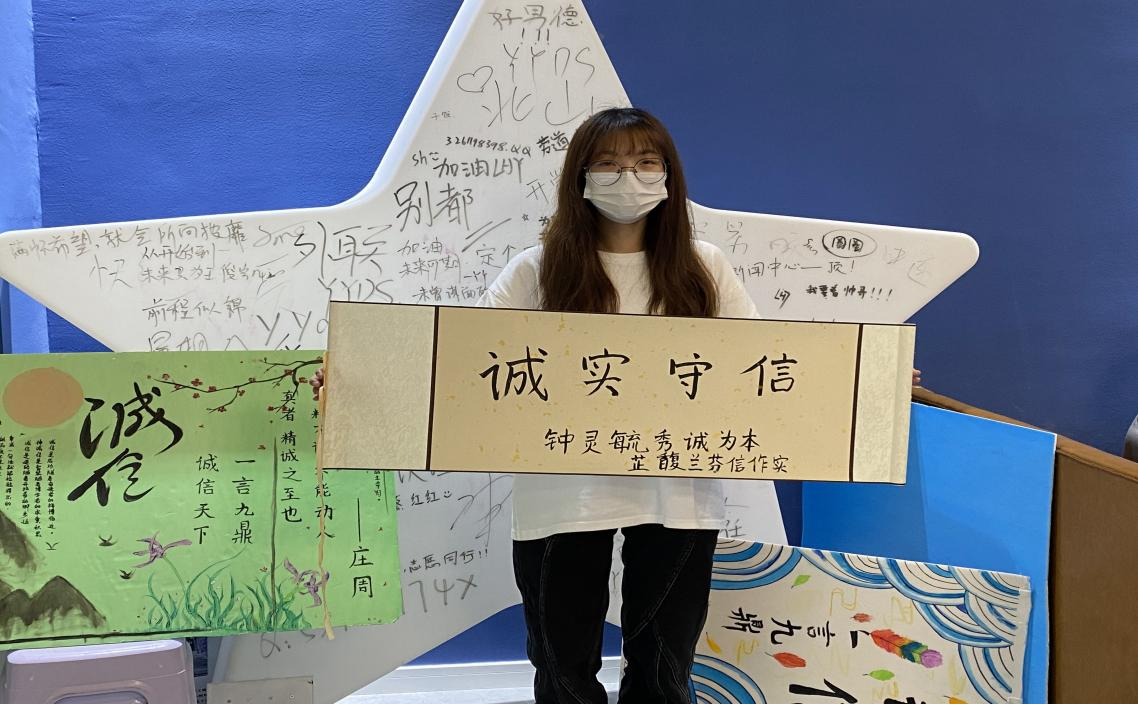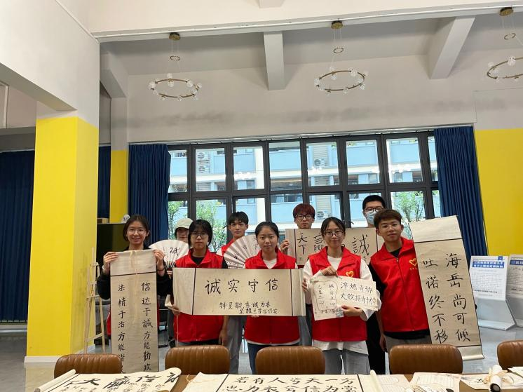 诚信是一轮金赤朗耀的圆月,惟有与高处的皎洁对视,才能沉淀出对待生命的真正态度。诚信的人,走遍天下都会有朋友;而虚伪的人,踏破铁鞋也无知己。在活动的尾声阶段,我们对同学们的作品进行合影留恋,在场的工作人员不得不感叹,同学们写的都很有大家风范,同学们脸上洋溢着笑容,富有满满的成就感。相信通过本次活动,大家在未来的日子里,一定会以诚信为座右铭去做自己的选择。