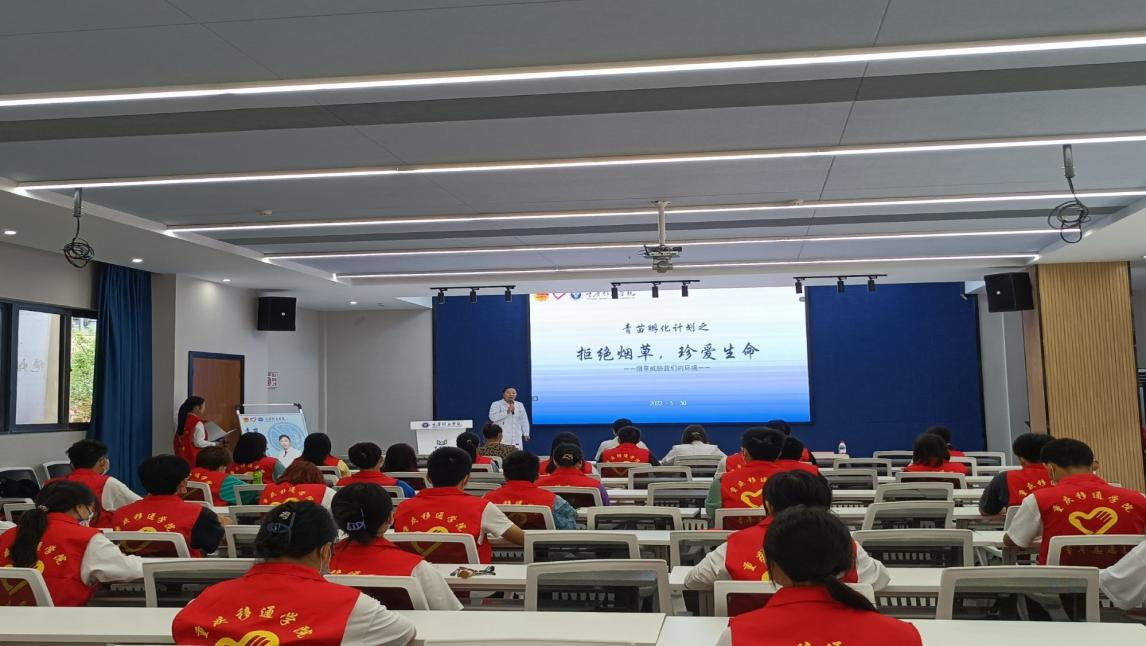 健康,随烟而逝;病痛,伴烟而生。吸烟“百害而无一利”,影响健康,缩短寿命。据统计:目前我国有3.5亿烟民,占全球吸烟总人口的三分之一,且近1亿年轻人因吸烟过早死亡。为普及有关烟草危害知识,提高同学们远离烟草的意识,我校红十字应急救援志愿服务专项支队携手青年志愿者协会邀请綦江区中医院肺科科室主任周明娅主任于2022年5月30日在我校QH2222观涛·多功能报告厅举办了2022世界无烟日:“拒绝烟草,珍爱生命”的知识讲座,对同学们进行相关知识培训。本次培训采取“线上+线下”的方式进行。