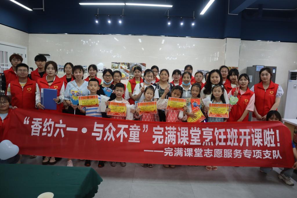 为积极响应教育部印发《义务教育课程方案》并指出中小学学生学会烹饪营养、整理归纳、家用电器使用与维护等内容,我校完满课堂志愿服务专项支队联合团委青年志愿者协会以六一儿童节为契机,邀请到通惠小学六名学生代表及六名家长于6月1日在綦河书院共享厨房组织开展了“香约六一·与众不童”主题活动,开展烹饪课,锻炼小学生的动手能力,在劳动实践中培养正确的劳动价值观和良好的劳动品质。