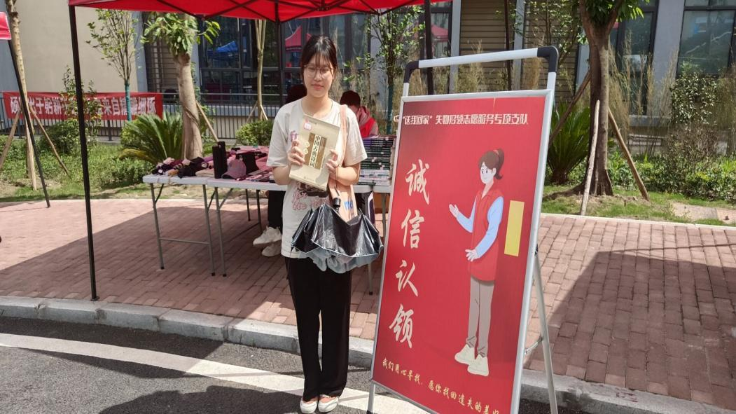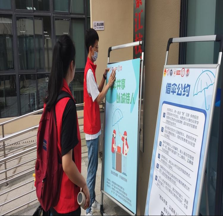 送“我”回家·失物招领志愿服务专项支队志愿者们利用拾到但长时间无人认领的雨伞,在食堂、图书馆、教学楼、宿舍楼等地摆放支架进行投放,同学们如果在紧急情况下要借用雨伞,就可以进行扫码登记,进行借用,后期在任意归还点也可以归还。当然,在雨伞流动的过程中,同学们发现摆放雨伞正是自己的,也可以持雨伞联系志愿者进行领取归还确认,做到爱心传递,失物认领两不误。“请允许‘我’的偶尔闯入,在老师和同学们即将迎着风雨向前走的时候出现,既然只能陪你一小段,那就选有风雨这一段。”共享雨伞的出现就是希望能在老师同学们有需要的时候,为你们提供帮助,实现它的价值,这也是对同学诚信观的一种激励与信任。此外联合“送”我回家失物招领志愿服务专项支队开展了“实物展出”活动,共同推动诚信月活动进一步深入进行和广泛开展。