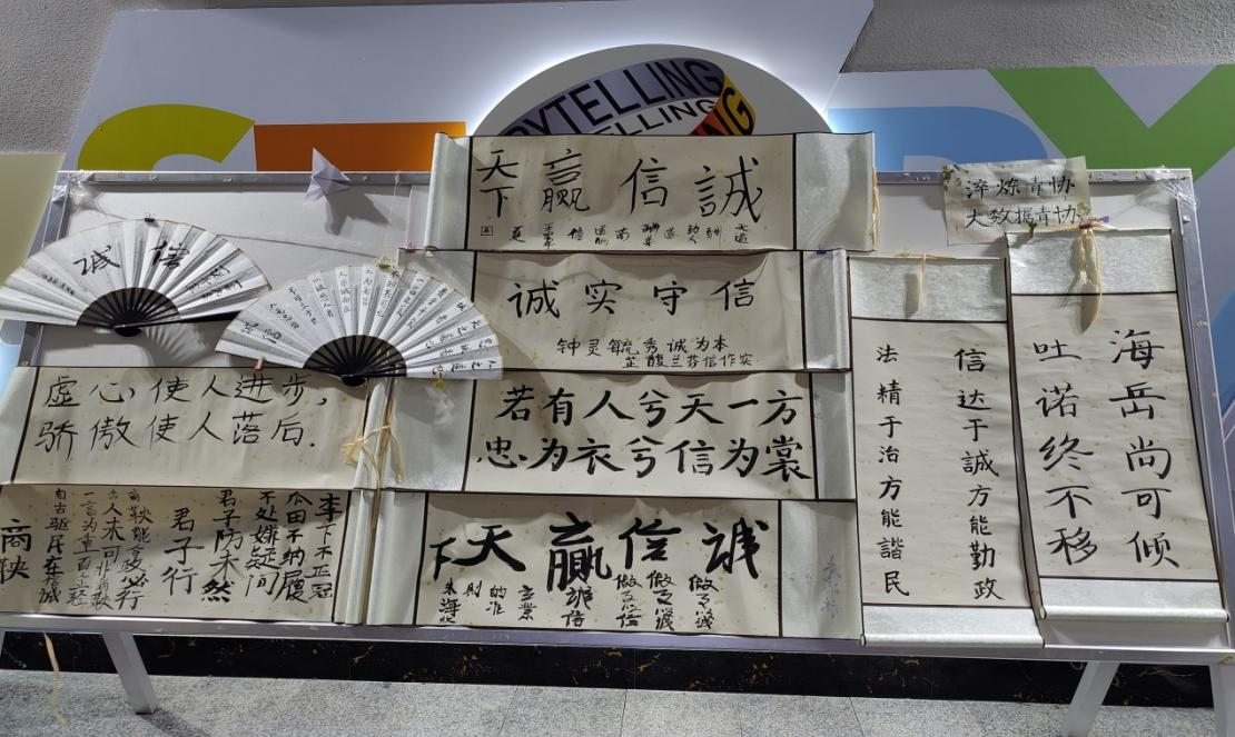 “内诚于心,外诚与人。”诚信是中华民族的传统美德,更是一个人立足于社会的基础。为使同学们认识到诚信的重要性,培养同学们的诚信意识,大数据与计算机科学学院青年志愿者协会特此开展青年信用体系建设,之五月诚信月活动:防诈反诈知识问答、诚信事例展板、诚信观影、诚信书法、诚信雨伞等等。通过主题活动让同学们树立“人人知信 人人讲信”的诚信观念,营造“以诚信守信为荣,以言而无信为耻”的氛围。